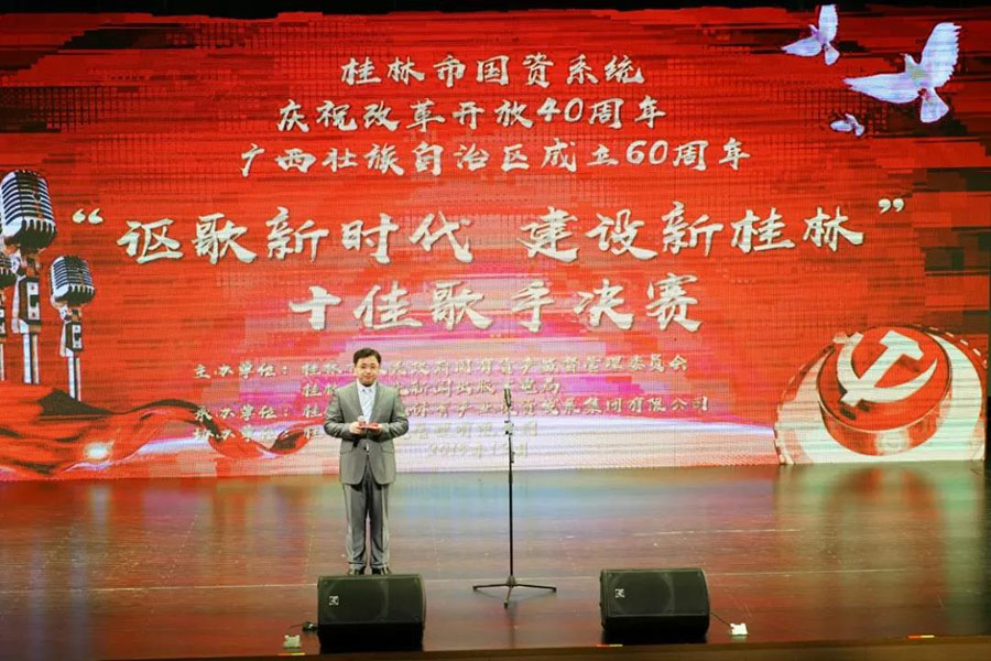 本次比賽旨在慶祝中華人民共和國成立69 周年、廣西壯族自治區(qū)成立60 周年,禮贊黨的十九大描繪的新時代宏偉藍圖。豐富國資系統(tǒng)干部職工的業(yè)余文化生活,謳歌國資系統(tǒng)干部職工圓夢新時代、建功新時代的豪情壯志,增強國資系統(tǒng)干部職工投身桂林國際旅游勝地建設(shè)的緊迫感、責(zé)任感和使命感。