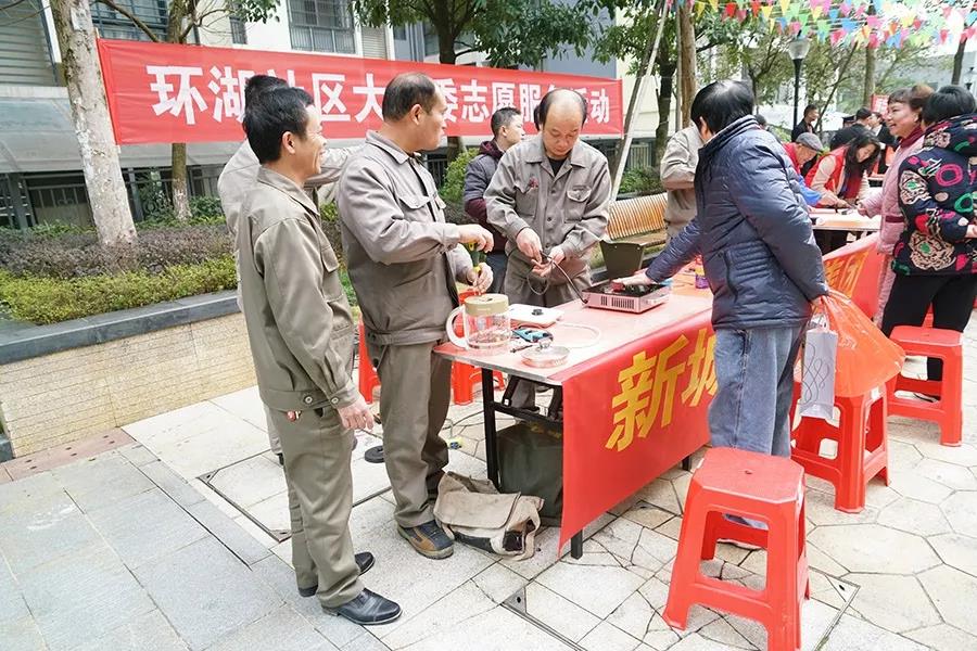 在新春佳節(jié)即將來臨之際,為深入助力文明城區(qū)創(chuàng)建,提升居民幸福感,營造春節(jié)的節(jié)日氣氛,1月23日上午,新城投資集團黨支部聯(lián)合環(huán)湖社區(qū)黨支部、宏謀物業(yè)公司在國惠村開展了“便民服務驛站”國惠村專場暨“喜迎新春寫對聯(lián) 書香情滿送祝?!被顒樱瑸榫用窬S修家電,送上春聯(lián),帶去節(jié)日的問候。新城投資集團黨支部書記周道林,副書記鄧仁友,工會主席譚力源,環(huán)湖社區(qū)黨支部書記李伊倩,宏謀物業(yè)公司總經(jīng)理劉孝國出席了活動。1