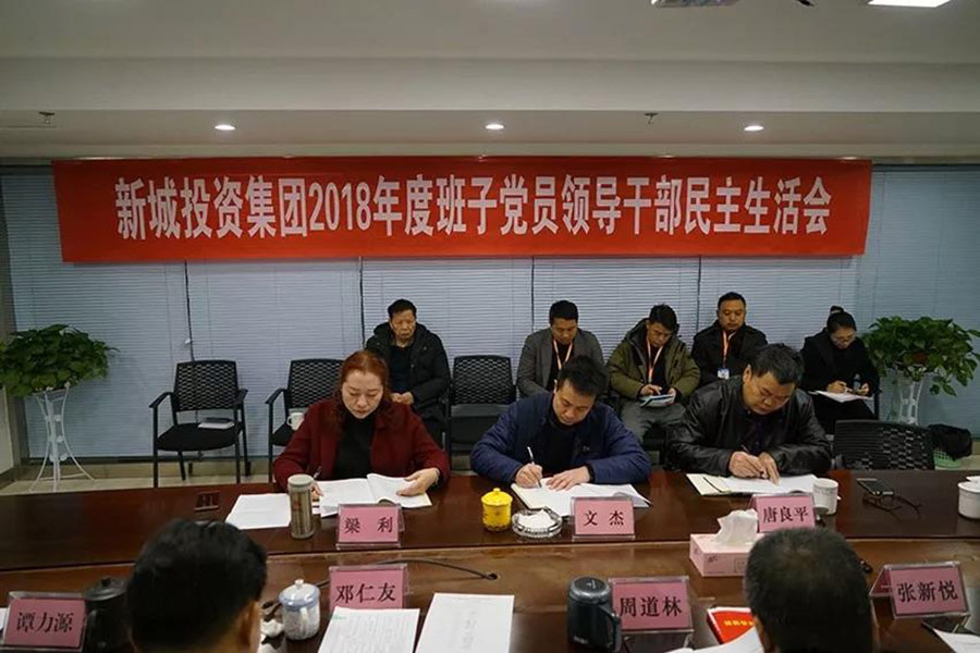 1月30日上午,新城投資集團(tuán)2018年度黨員領(lǐng)導(dǎo)干部民主生活會(huì)在新城商務(wù)酒店辦公樓1513會(huì)議室召開(kāi)。這次民主生活會(huì),以“強(qiáng)化創(chuàng)新理論武裝,樹(shù)牢‘四個(gè)意識(shí)’,堅(jiān)定‘四個(gè)自信’,勇于擔(dān)當(dāng)作為,以求真務(wù)實(shí)作風(fēng)堅(jiān)決把黨中央決策部署落到實(shí)處”為主題。