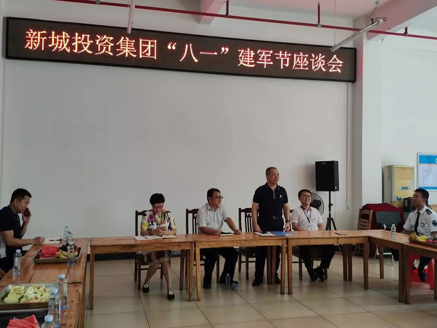 8月1日下午,新城投資集團(tuán)黨支部、工會(huì)聯(lián)合組織召開了新城投資集團(tuán)“八一”建軍節(jié)座談會(huì),集團(tuán)公司20余名退伍軍人和軍嫂參加座談會(huì)。