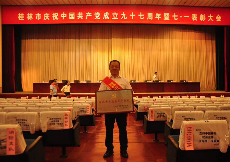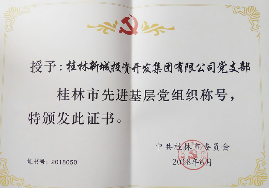 2018年6月29日上午,在桂林市直機(jī)關(guān)小禮堂舉行的桂林市慶祝中國(guó)共產(chǎn)黨成立九十七周年暨七·一表彰大會(huì)上,表?yè)P(yáng)了全市先進(jìn)基層黨組織、優(yōu)秀共產(chǎn)黨員、優(yōu)秀黨務(wù)工作者,新城投資集團(tuán)黨支部榮獲“桂林市先進(jìn)基層黨組織”稱號(hào),黨支部書(shū)記周道林代表新城投資集團(tuán)黨支部參加了此次表彰大會(huì)。