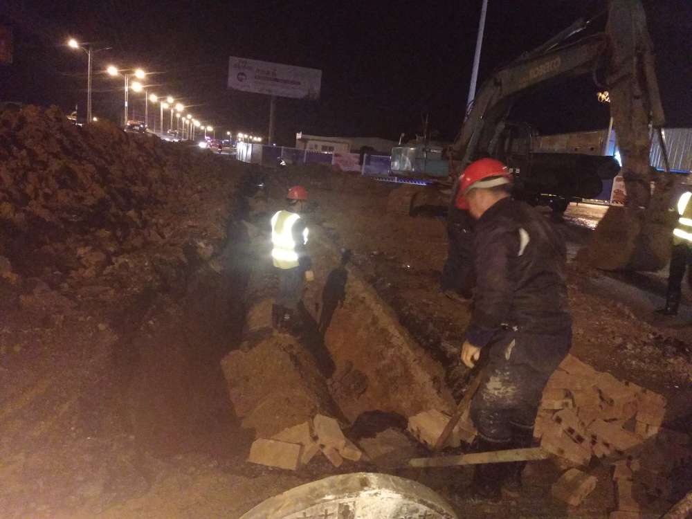 圖為連夜加班開挖溝槽現(xiàn)場