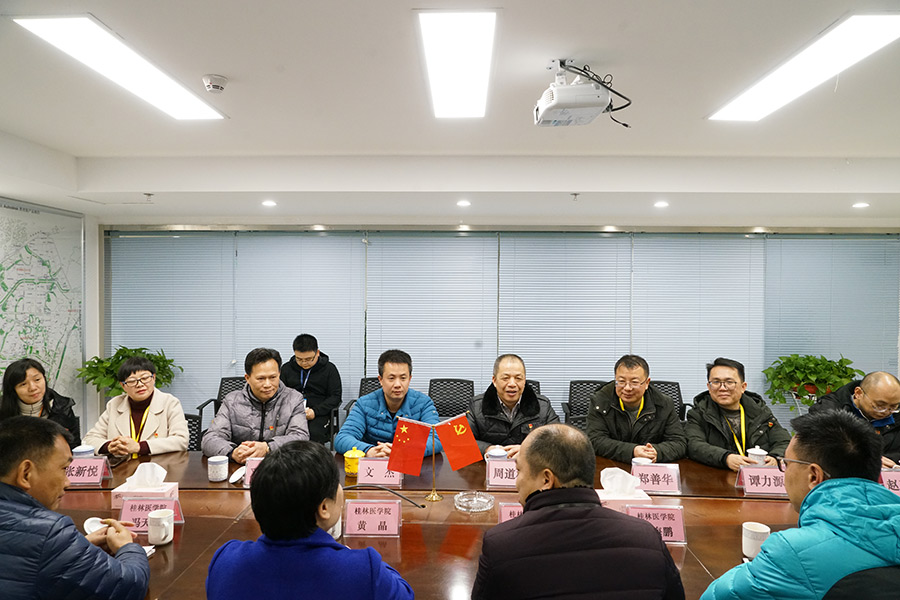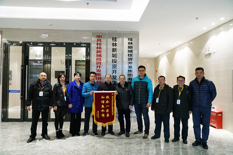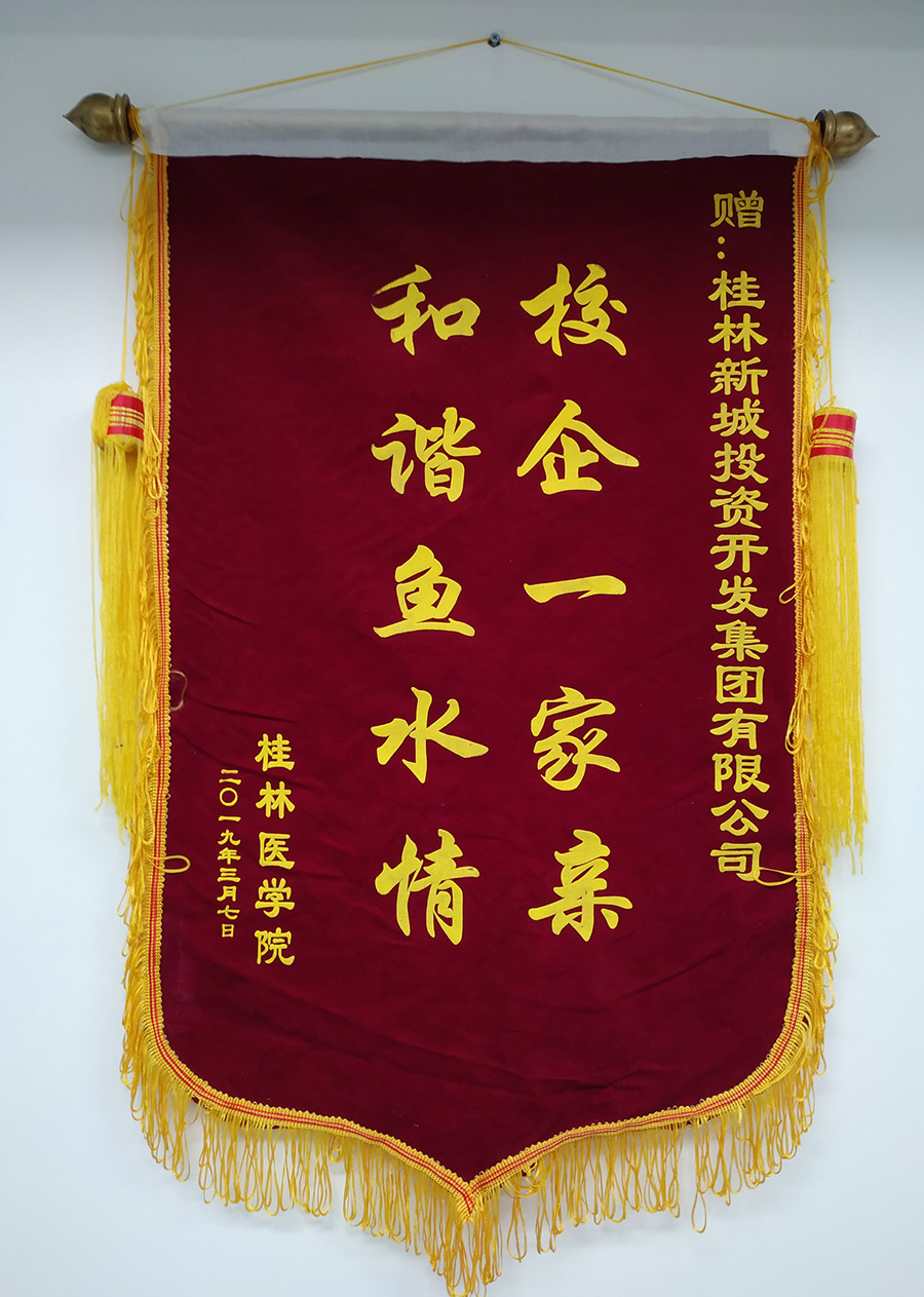 圖為桂林醫(yī)學(xué)院院長助理覃克強(qiáng)一行向新城投資集團(tuán)贈(zèng)送錦旗