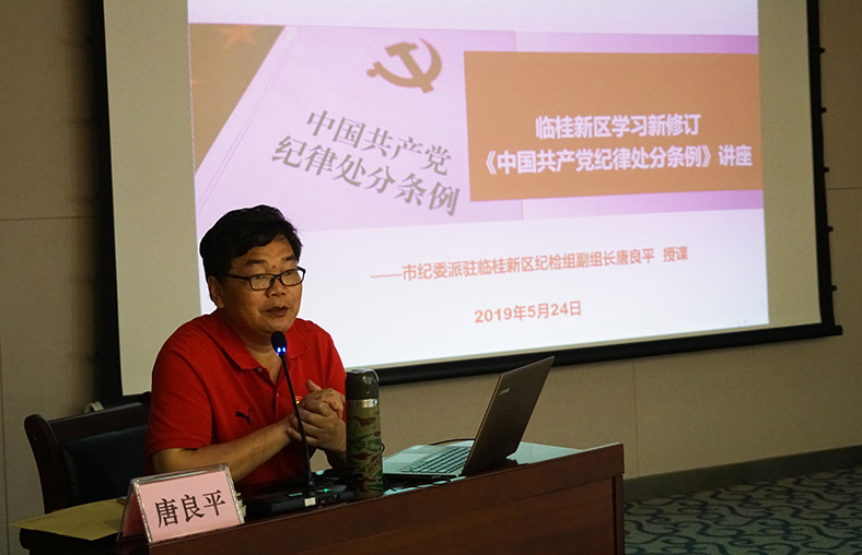 5月24日上午,臨桂新區(qū)舉辦《中國共產(chǎn)黨紀(jì)律處分條例》輔導(dǎo)講座。邀請市紀(jì)委派駐臨桂新區(qū)紀(jì)檢組副組長唐良平同志作《中國共產(chǎn)黨紀(jì)律處分條例》輔導(dǎo)報(bào)告。臨桂新區(qū)工委副書記、管委會副主任唐標(biāo)明,臨桂新區(qū)工委委員、管委會副主任陳清,臨桂新區(qū)工委委員、管委會副主任文杰,臨桂新區(qū)工委委員、管委會副主任蔣玖明,新城投資集團(tuán)黨支部書記、總經(jīng)理周道林以普通黨員身份參加此次講座。臨桂新區(qū)黨總支全體黨員、預(yù)備黨員、發(fā)展對象及入黨積極分子參加學(xué)習(xí)。