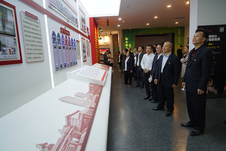活動當天,大家參觀了位于新城投資集團辦公大樓一、二樓的桂林市黨群服務中心。講解員為黨員們一一講解了中心的定位、功能及各展區(qū)的內容,黨員們認真聆聽講解員的講解,依次參觀了桂林市黨員志愿者服務總站、黨群業(yè)務受理區(qū)和黨組織活動區(qū)等展廳。體驗了“健康小屋”“城市書吧”“i游桂林”“時光隧道”“微笑墻”“非遺文化屋”“紅色影院”“電子翻書”等功能設施。通過觀看3D幻影成像《湘江戰(zhàn)役》和微電影《廖俊波》,真切感受了先輩們踐行初心拋頭顱、灑熱血的壯舉及廖俊波同志對黨忠誠、無私奉獻的高尚品質。在以湘江戰(zhàn)役為歷史背景而制作的雕塑前,全體黨員合唱《國際歌》《中華人民共和國國歌》,重溫入黨誓詞。