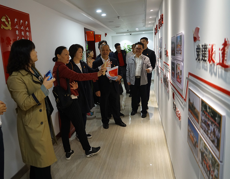 在一樓黨群展示區(qū),肖揚燕駐足觀看了公司黨建宣傳片,強烈感受到新城投資集團黨支部狠抓黨建、促融資建設、提員工精神面貌的實際成效。依次參觀了新城投資集團企業(yè)簡介、企業(yè)文化、集團大事記、集團組織架構、黨務公開欄、工會和共青團介紹等版塊,不時與周書記探討與互動。在十五樓,肖揚燕被走廊兩邊的黨建氛圍營造展示墻、辦公室門口的“黨員心語”以及黨員會議室濃濃的黨建氛圍所吸引,給予高度評價。她說,自己從事基層黨務工作多年,走訪了那么多單位,今天看到的新城投資集團黨建展示區(qū)是做得最好的、最有亮點的,充分感受到新城投資集團真正將抓黨建付諸于行動和實踐。桂林市黨群服務中心選址在新城投資集團辦公大樓一樓,整棟樓黨建氛圍濃、設計起點高、品位雅致、內涵豐富,值得臨桂區(qū)直機關工委組織下屬單位黨組織過來觀摩學習。
