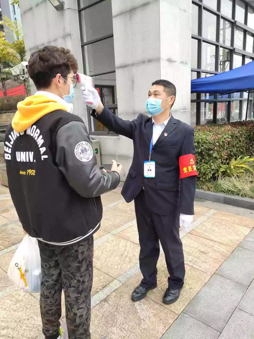▲疫情防控崗在為進(jìn)入辦公樓人員測(cè)體溫。