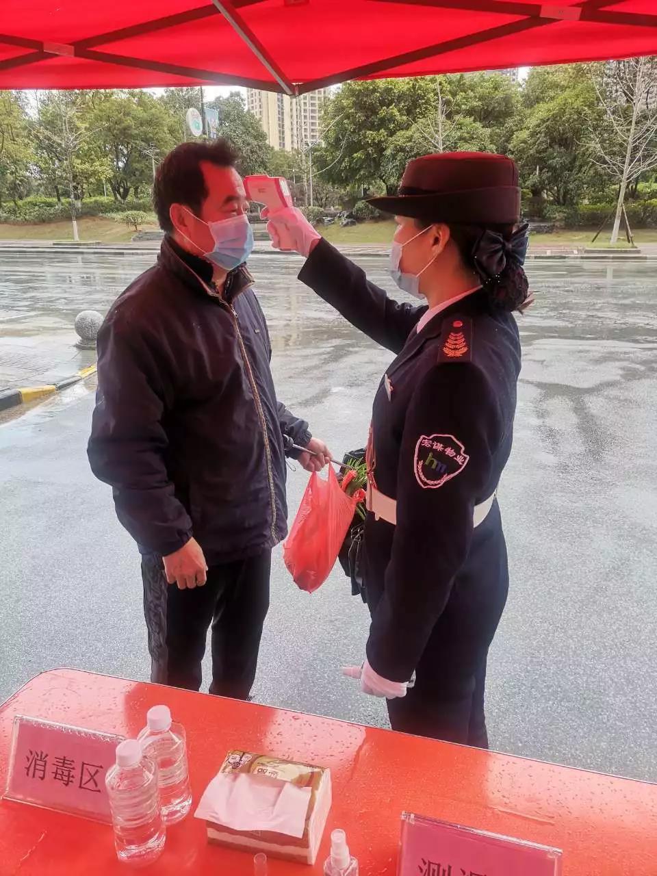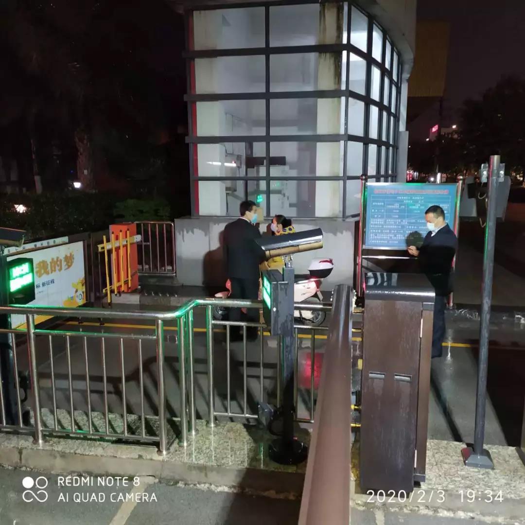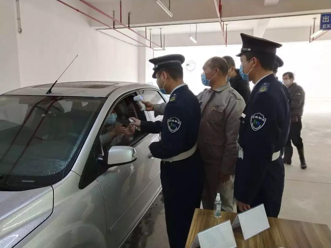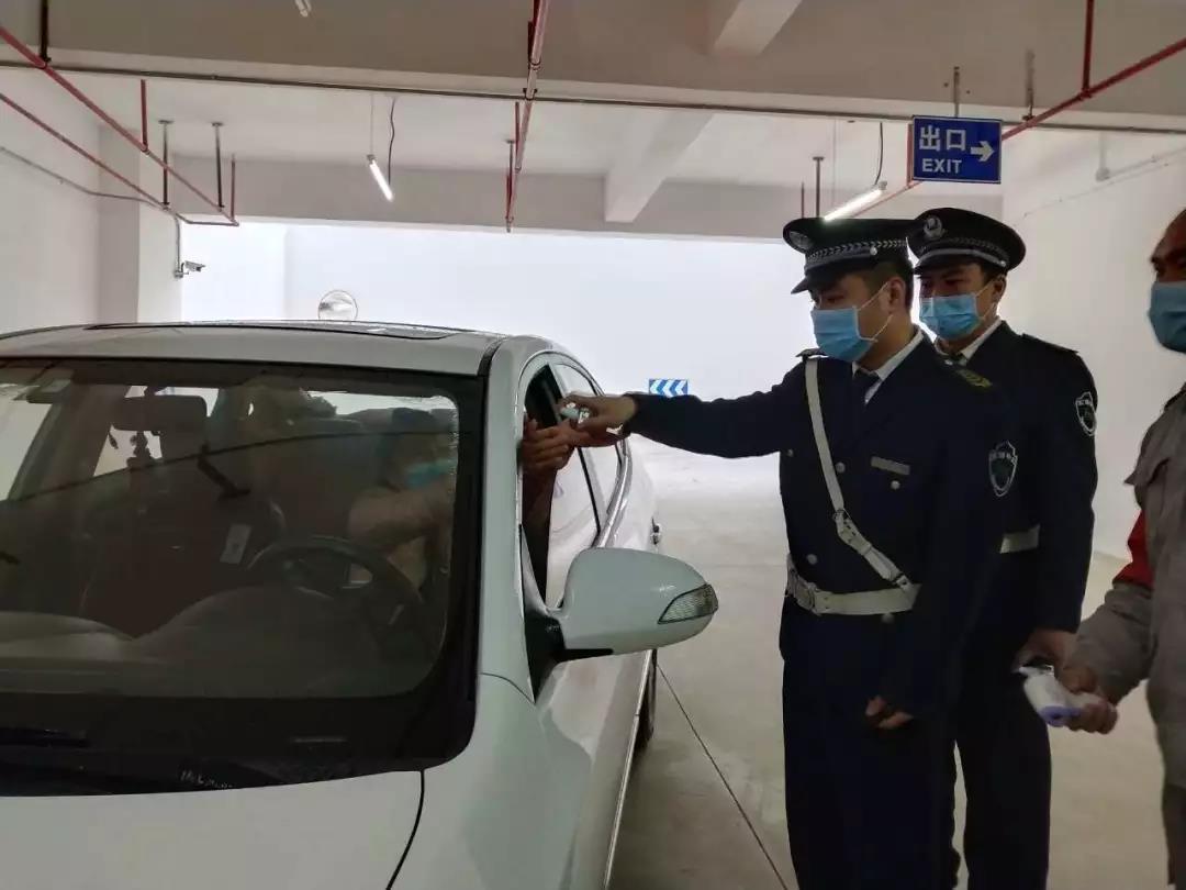 ▲地下停車(chē)場(chǎng)也設(shè)立了疫情防控崗,為進(jìn)入停車(chē)場(chǎng)停車(chē)人員測(cè)體溫、噴灑酒精消毒。