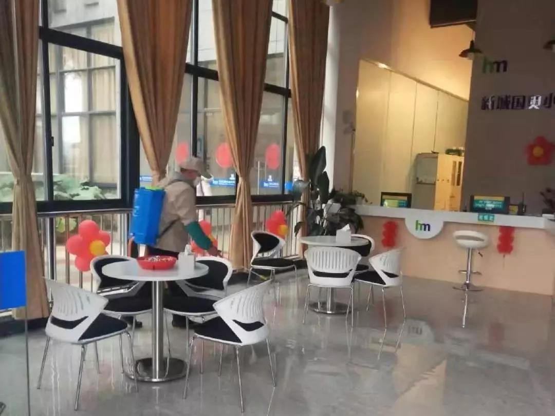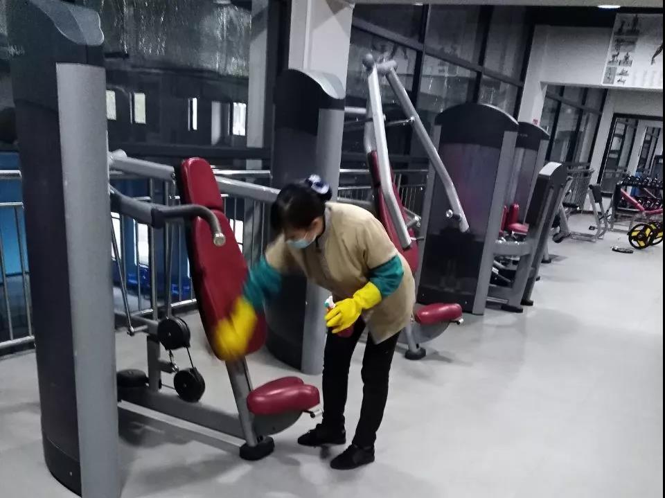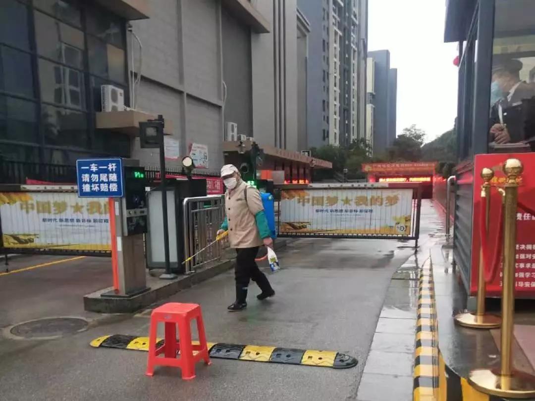 ▲保潔人員分別對(duì)物業(yè)中心、員工食堂、小區(qū)門(mén)崗、宏謀體育館等區(qū)位進(jìn)行全面消毒。