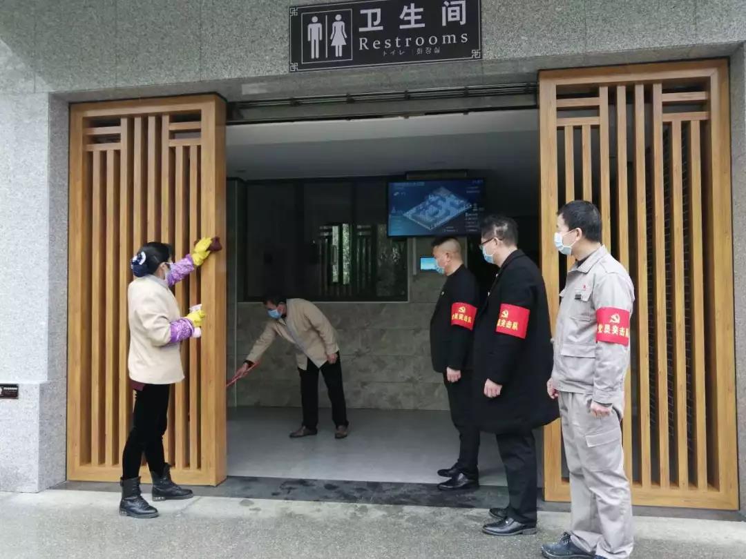 ▲黨員突擊隊(duì)成員趙劍波、周成組織相關(guān)人員對(duì)景區(qū)的防疫工作及安全工作進(jìn)行檢查。