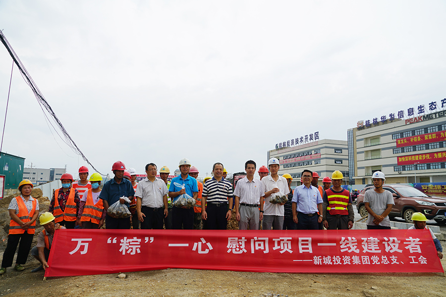 上午,新城投資集團(tuán)黨總支、工會還開展了“萬'粽'一心,共創(chuàng)文明城”端午節(jié)慰問項目一線建設(shè)者活動,臨桂新區(qū)工委委員、管委會副主任文杰,集團(tuán)黨總支書記、董事長周道林率隊帶著新鮮出爐的粽子,來到西城大道南延長線兩個標(biāo)段施工現(xiàn)場,為奮斗在市政府限期完工的西城大道南延長線,慰問一線的190名建設(shè)者們。