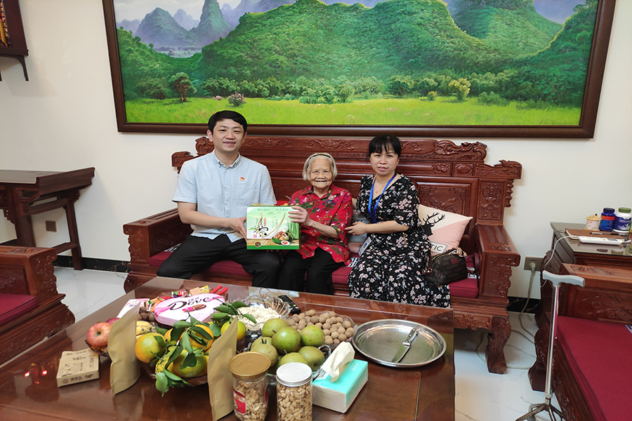 下午,根據(jù)新區(qū)工委《2020年臨桂新區(qū)創(chuàng)建全國文明城市志愿服務(wù)工作方案》,集團(tuán)黨總支、工會聯(lián)合環(huán)湖社區(qū)黨支部共同開展“端午佳節(jié) 濃情粽意”慰問社區(qū)老人志愿服務(wù)活動,周道林陪同臨桂區(qū)委組織部副部長,臨桂鎮(zhèn)黨委副書記,社會事務(wù)管理中心常務(wù)副主任蔡云亞,桂林市臨桂區(qū)社會事務(wù)管理中心副主任盧元妹等一起走進(jìn)國奧小區(qū),給老人們送去熱氣騰騰的愛心粽子。