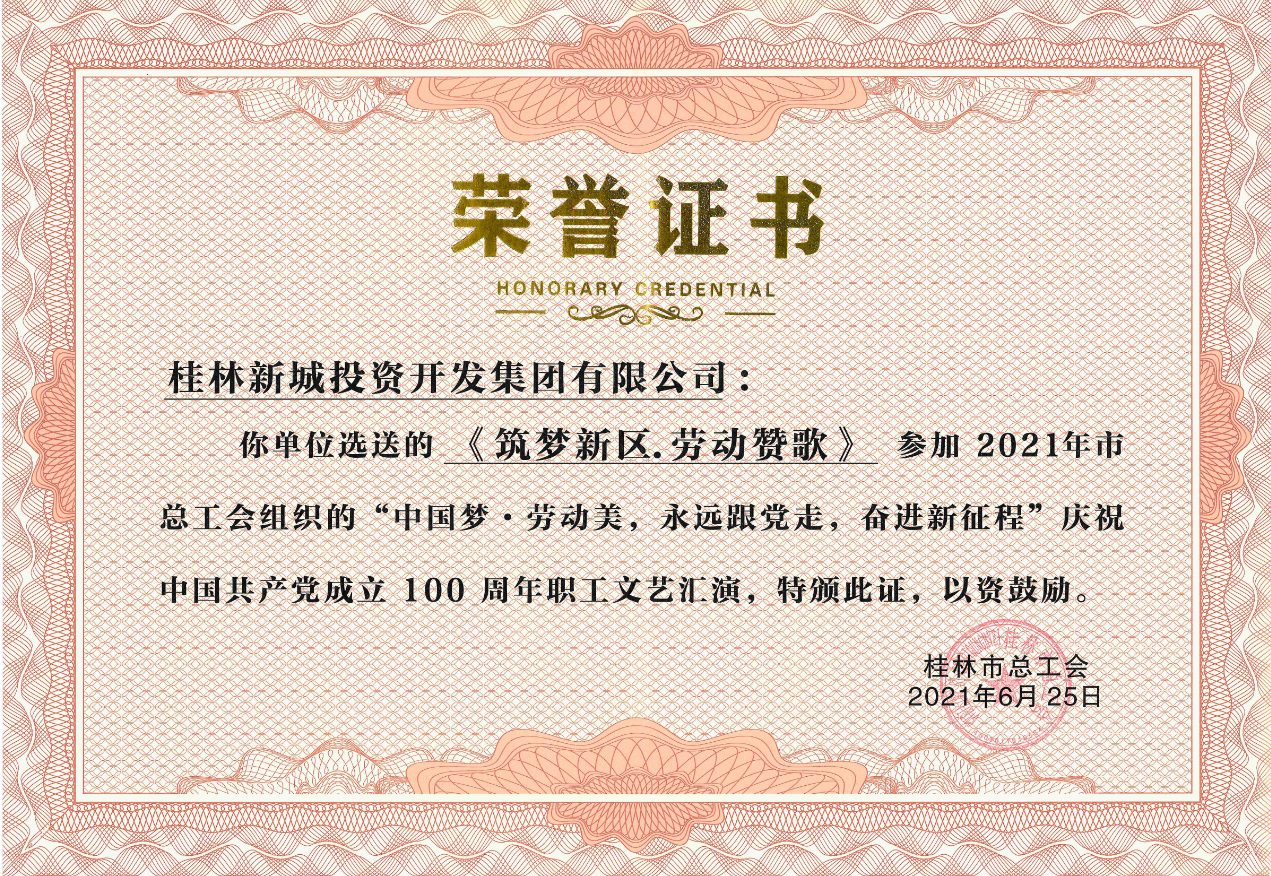 2021年6月25日,由桂林市總工會主辦的 “中國夢勞動美——永遠(yuǎn)跟黨走,奮進(jìn)新征程”慶祝中國共產(chǎn)黨成立100周年全市職工文藝匯演在桂林春天劇院隆重舉行。市委副書記趙仲華,市人大副主任、市總工會主席徐鋒,副市長龍杏華,市政協(xié)副主席蔣昌桂,市總工會黨組書記、常務(wù)副主席、機(jī)關(guān)黨委書記寧志出席活動。新城投資集團(tuán)黨總支書記、董事長、總經(jīng)理周道林作為受邀嘉賓參加活動。