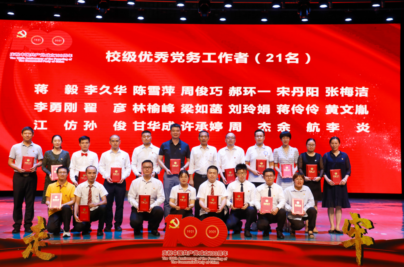 隨后,黨委書記唐文紅,校長(zhǎng)楊樹喆等為新黨員代表佩戴黨徽、贈(zèng)送黨史學(xué)習(xí)教育書籍;為優(yōu)秀共產(chǎn)黨員、優(yōu)秀黨務(wù)工作者和先進(jìn)基層黨組織獲得者頒獎(jiǎng);為學(xué)校2019-2020年度“至善之星”團(tuán)隊(duì)和個(gè)人獲得者頒獎(jiǎng)。