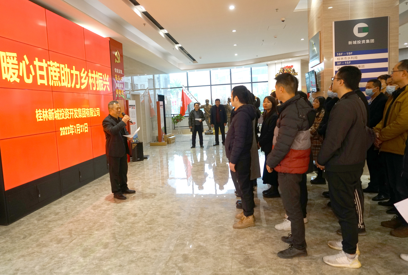 2022年1月21日,新城投資集團組織開展了“暖心甘蔗助力鄉(xiāng)村振興”活動。集團黨總支書記、董事長周道林,五通鎮(zhèn)羅江村黨總支部書記林次生參加活動。活動由集團黨總支委員、工會主席譚力源主持。