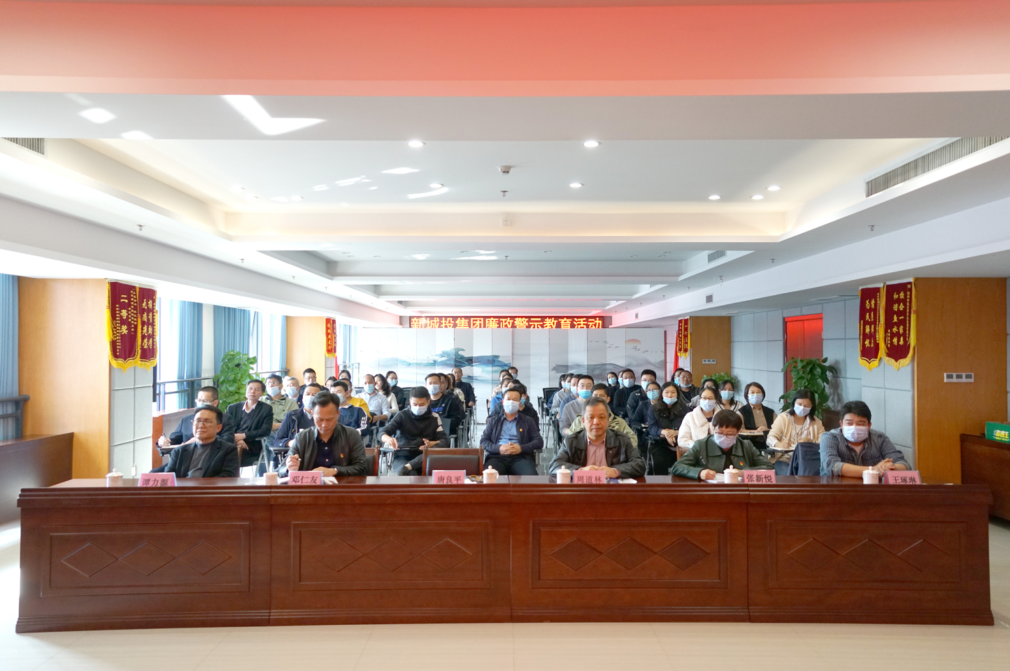 新城投集團領導班子成員、中層副職及以上干部(含子公司班子),財務部、法務經(jīng)營部、成本管理部全體人員觀看了廉政警示教育片。