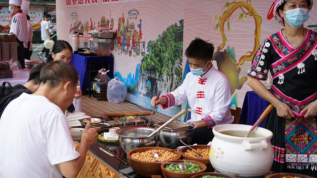 活動(dòng)現(xiàn)場(chǎng),“品非遺美食,游桂林山水”的主題引人入勝,桂林米粉、恭城油茶“非遺”文化展示及品嘗等活動(dòng)精彩紛呈。為確?;顒?dòng)的順利進(jìn)行,宏謀酒管公司迅速組織了20名一線工作者,他們不懼烈日高溫,全心全意地投入到工作中。盡管汗水浸透了他們的衣衫,但他們始終保持著飽滿的熱情和專(zhuān)注,為新生們提供了優(yōu)質(zhì)的服務(wù)。活動(dòng)現(xiàn)場(chǎng)氛圍火爆,總計(jì)供應(yīng)了2000碗米粉以及1500碗油茶,為初來(lái)乍到新生和家長(zhǎng)們帶來(lái)了一場(chǎng)別具特色的美食文化盛宴。