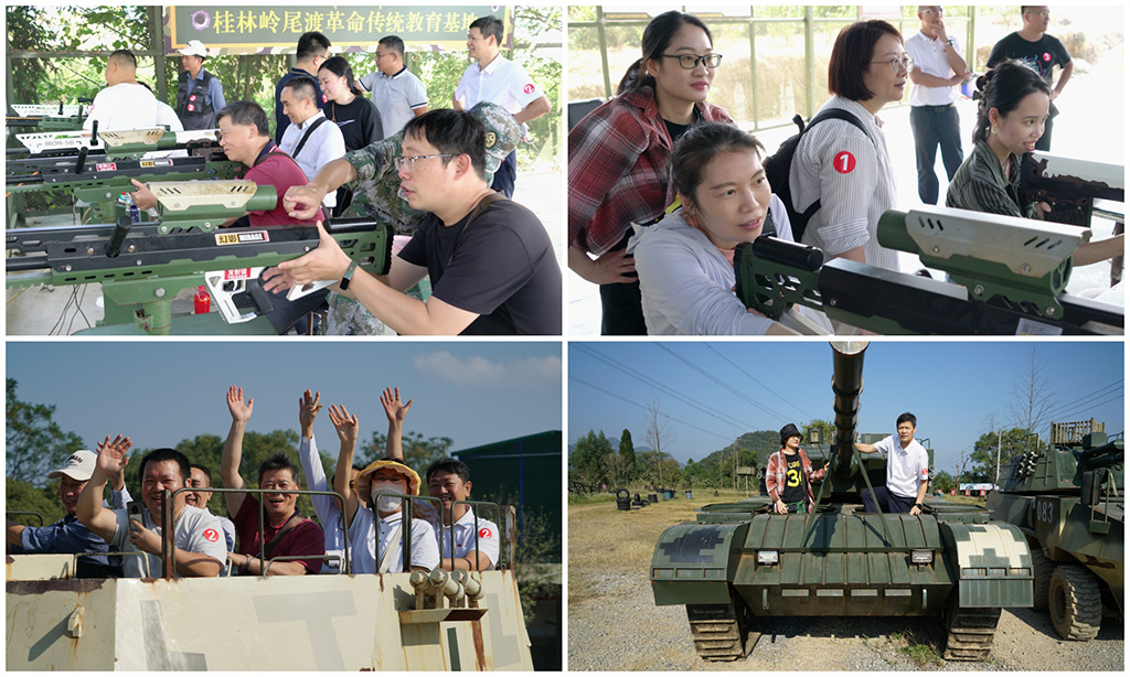 下午,全體成員前往桂林嶺尾渡革命傳統(tǒng)教育基地進(jìn)行實地學(xué)習(xí)。大家通過參觀桂北游擊隊文史館,聆聽革命故事,共同回顧了那段波瀾壯闊的革命歲月,深刻領(lǐng)悟到革命先輩們?yōu)槊褡濯?dú)立和人民解放事業(yè)所付出的巨大犧牲。參觀結(jié)束后,大家在基地體驗了射擊、坦克駕乘項目,通過寓教于樂的方式,體驗桂北游擊抗日精神和吃苦耐勞的革命精神,增強(qiáng)愛國主義情懷和意識。