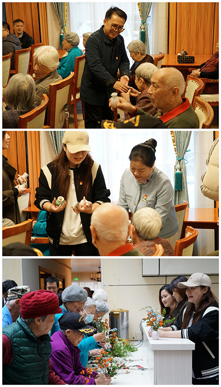 黨課結(jié)束后,老人們?cè)邳h員志愿者的陪伴下開(kāi)展插花活動(dòng)。志愿者們將一個(gè)個(gè)小巧精致的花瓶親手送到每一位老人的手中。在一片歡聲笑語(yǔ)中,大家一邊享受插花樂(lè)趣,一邊分享彼此心得體會(huì),攜手創(chuàng)作出一件件精美的插花作品。看著自己親手制作的作品,老人們臉上流露出深深的成就感和自豪感。