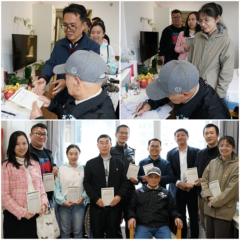 活動(dòng)圓滿(mǎn)結(jié)束后,吳仲先爺爺熱情邀請(qǐng)新城投集團(tuán)第三黨支部的志愿者們來(lái)到他的房間。大家圍在吳爺爺身邊親切交談,關(guān)心地詢(xún)問(wèn)他的身體狀況和生活情況。吳爺爺親手把他編著的書(shū)籍——《與時(shí)俱進(jìn)論國(guó)是》贈(zèng)予每一位志愿者,并在書(shū)上寫(xiě)下溫馨寄語(yǔ)。這些飽含深情的親筆贈(zèng)言,流露出吳爺爺堅(jiān)強(qiáng)的意志、奉獻(xiàn)的精神和始終如一的初心,讓在場(chǎng)的每個(gè)人都深受感動(dòng)。
