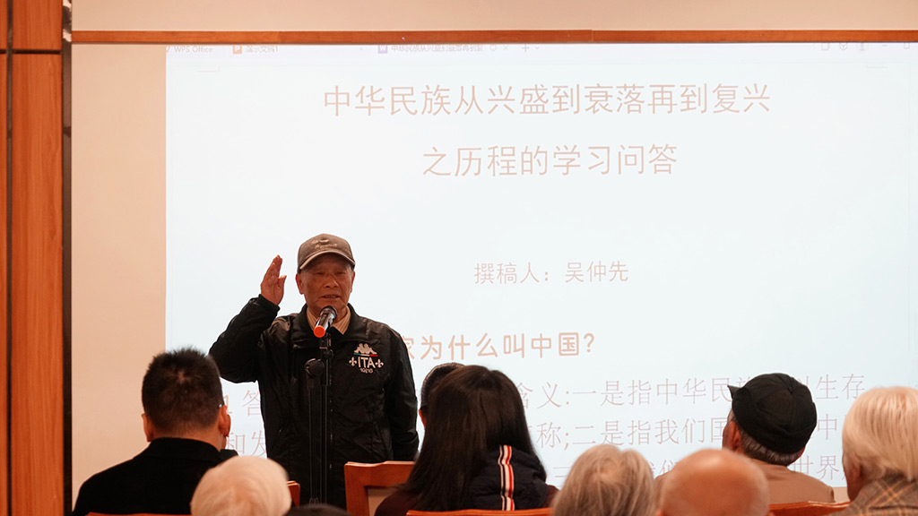隨后,94歲高齡的黨校退休老教授吳仲先爺爺,以《中華民族從興盛到衰落再到復(fù)興》為主題,給年輕黨員同志上了一堂意義非凡的黨課,系統(tǒng)闡述了中華民族興衰復(fù)興歷程,揭示歷史規(guī)律與教訓(xùn),極具思想性、教育性與啟發(fā)性。