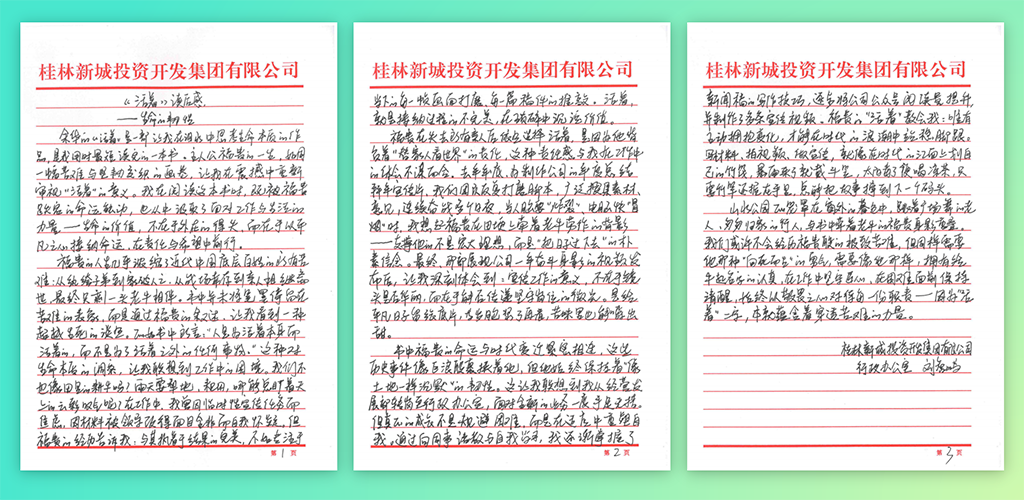 本次活動吸引了廣大員工踴躍參與,共收集作品30余份,他們以飽滿的熱情和高度的責任感,圍繞讀書主題,結(jié)合自身豐富的閱讀經(jīng)歷與深刻感悟,撰寫出了一篇篇亮點紛呈的文章。這些作品或抒發(fā)對經(jīng)典名著的熱愛,或分享閱讀帶來的成長與啟發(fā),充分展現(xiàn)了新城投集團員工積極向上、熱愛閱讀的精神風貌,讓整個公司都彌漫著濃郁的書香氣息。