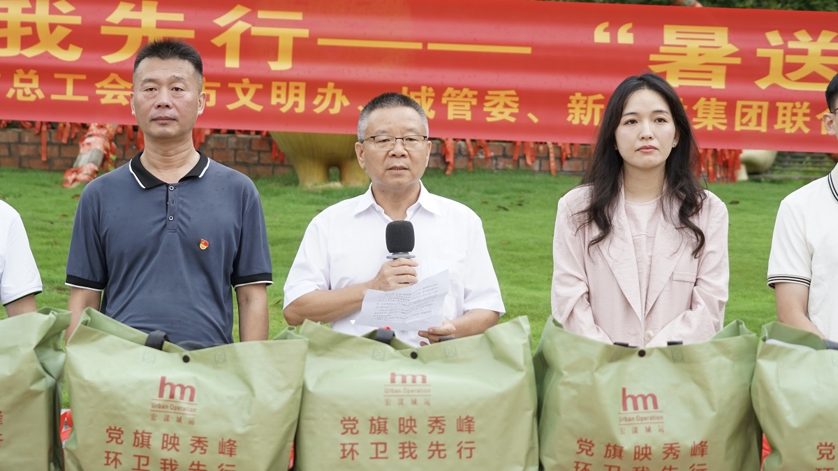蘇紹坤在致辭中向奮戰(zhàn)在高溫一線的環(huán)衛(wèi)工人致以誠摯問候和崇高敬意。他指出,環(huán)衛(wèi)工人是文明守護者,城市建設(shè)每一點成績都離不開他們的辛勤付出。秀峰區(qū)始終把環(huán)衛(wèi)事業(yè)放在城市治理的突出位置,新城投集團下屬宏謀城運公司承接項目后,以專業(yè)能力推動工作提質(zhì)增效。今后,區(qū)政府將持續(xù)優(yōu)化防護措施、改善作業(yè)裝備,并帶動全社會尊重環(huán)衛(wèi)勞動,使“垃圾不落地”成為市民自覺行動,共同讓秀峰更加潔凈。