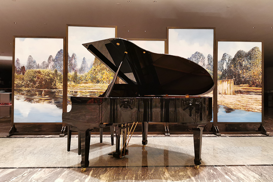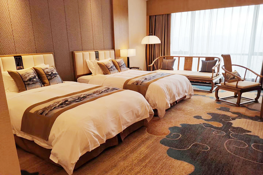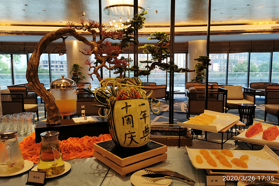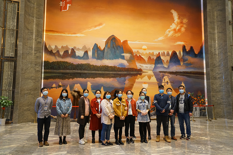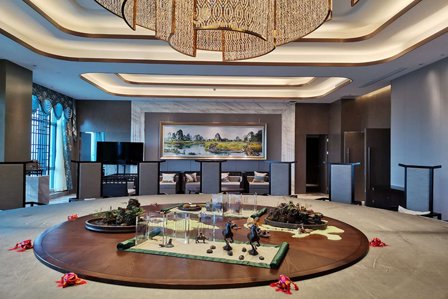 試業(yè)的桂林宏謀大酒店,充分展現(xiàn)現(xiàn)代藝術(shù)酒店的低調(diào)、大氣、有內(nèi)涵。巨型的漓江黃布倒影油畫(huà)、璀璨的銅鼓吊燈、云卷的砂巖壁畫(huà)……大家被名家友情布展酒店的字畫(huà)、雕塑精品的獨(dú)特文化氛圍感染,感嘆酒店有深度的藝術(shù)魅力。參觀的員工紛紛駐足拍照,發(fā)朋友圈廣泛宣傳藝術(shù)的宏謀、文化的酒店。