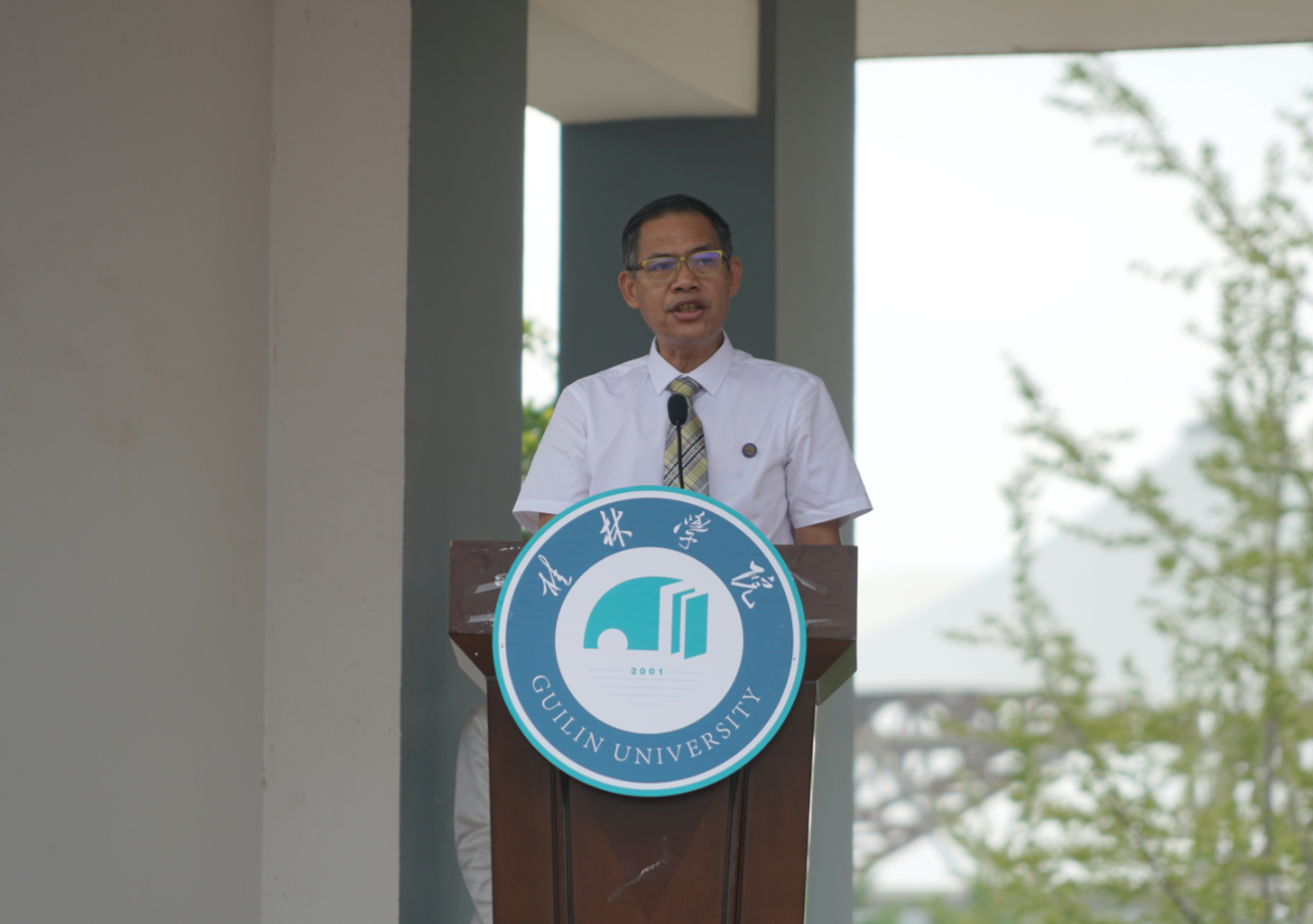 周道林表示,作為桂林學(xué)院的首屆新生,大家是學(xué)校新發(fā)展的見證者和參與者。為了給大家創(chuàng)造更好的學(xué)習(xí)環(huán)境,提供更好的發(fā)展平臺,學(xué)校將認(rèn)真貫徹落實教育部致自治區(qū)人民政府《關(guān)于同意廣西師范大學(xué)漓江學(xué)院轉(zhuǎn)設(shè)為桂林學(xué)院的函》等文件精神,加大辦學(xué)投入,進一步完善辦學(xué)條件,按照“做強新文科、壯大新工科、拓展新農(nóng)科和新醫(yī)科”的基本思路,實施“強基礎(chǔ)補短板、重內(nèi)涵提質(zhì)量、育特色樹品牌”戰(zhàn)略,堅定“規(guī)范高效、特色鮮明、質(zhì)量與就業(yè)雙優(yōu)的國有民辦城市大學(xué)”發(fā)展目標(biāo),全面深化教育教學(xué)改革,不斷調(diào)整優(yōu)化學(xué)科專業(yè)結(jié)構(gòu),完善現(xiàn)代大學(xué)內(nèi)部治理體系,提高適應(yīng)區(qū)域經(jīng)濟社會發(fā)展所需要的應(yīng)用型、技術(shù)技能型人才培養(yǎng)質(zhì)量,加快建成桂林人民滿意的創(chuàng)新大學(xué)、開放大學(xué)、窗口大學(xué)。今年4月,習(xí)近平總書記在桂林考察調(diào)研時,給桂林設(shè)定了打造世界級旅游城市的歷史使命。站在新的歷史起點上,希望大家要始終牢記總書記的囑托,主動將自己的學(xué)習(xí)成長、個人發(fā)展與國家的發(fā)展需求緊密結(jié)合,為國家發(fā)展貢獻自己最大的力量。更多的關(guān)注桂林市的發(fā)展,用自己的所學(xué)所長來為桂林市的建設(shè)添磚加瓦。