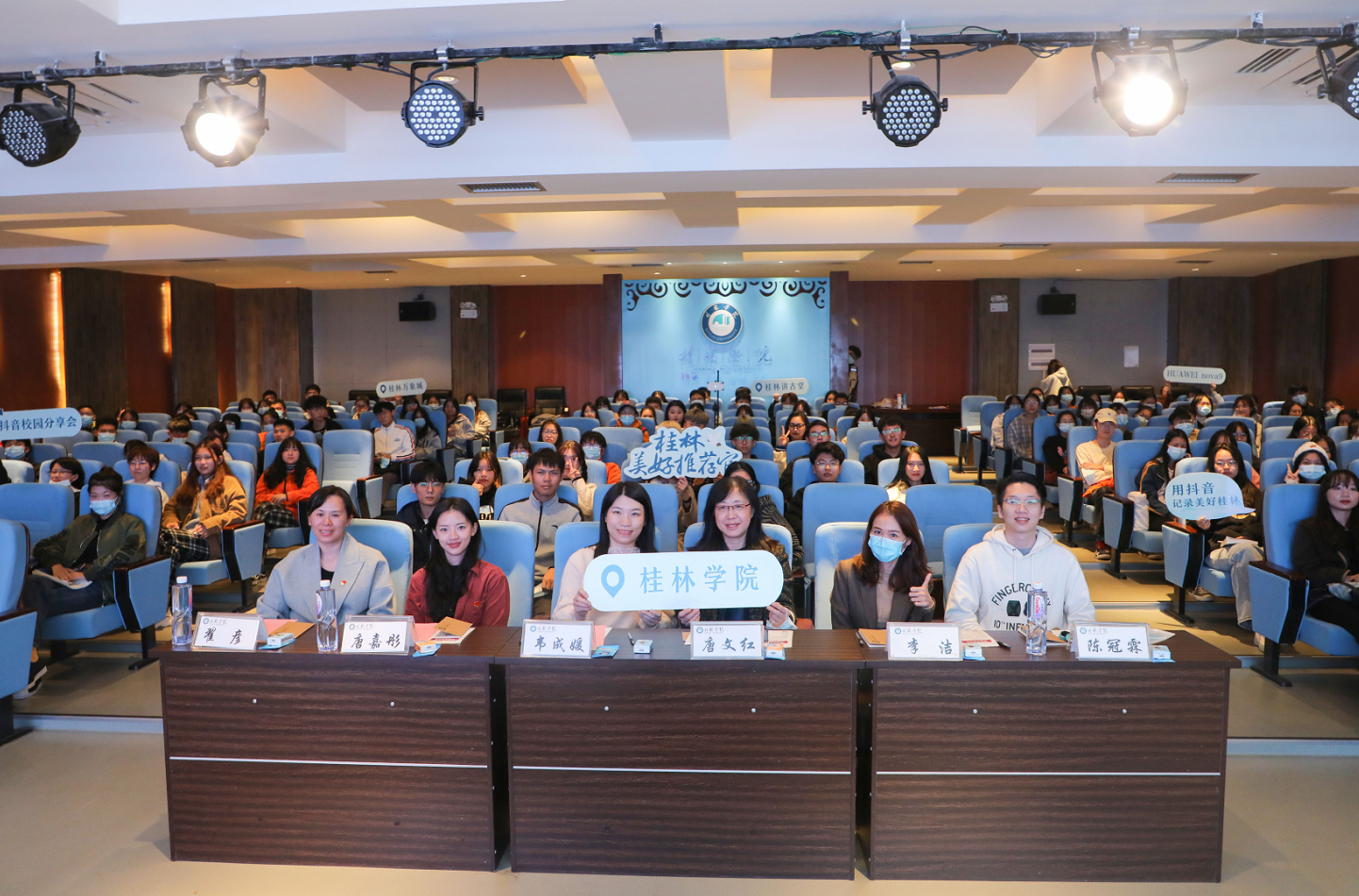 “桂林美好推薦官”話題活動由自治區(qū)文化和旅游廳、共青團(tuán)廣西壯族自治區(qū)委員會、共青團(tuán)桂林市委員會、桂林旅游發(fā)展總公司、桂林旅游股份有限公司共同發(fā)起。桂林學(xué)院作為桂林唯一高校承辦了此次線下抖音校園分享會。桂林各高校抖音愛好者代表參加活動。