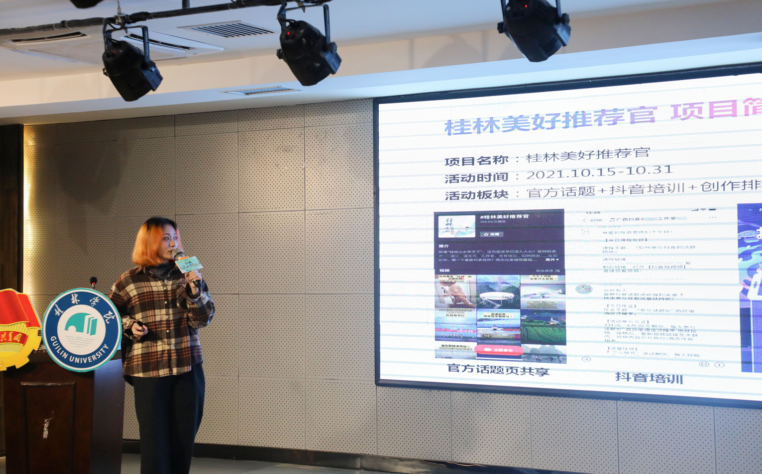 10月21日,“桂林美好推薦官--抖音推廣活動”在桂林學(xué)院至善講堂舉行。活動吸引了廣大網(wǎng)友關(guān)注,當(dāng)日抖音話題播放達(dá)1.4億次。