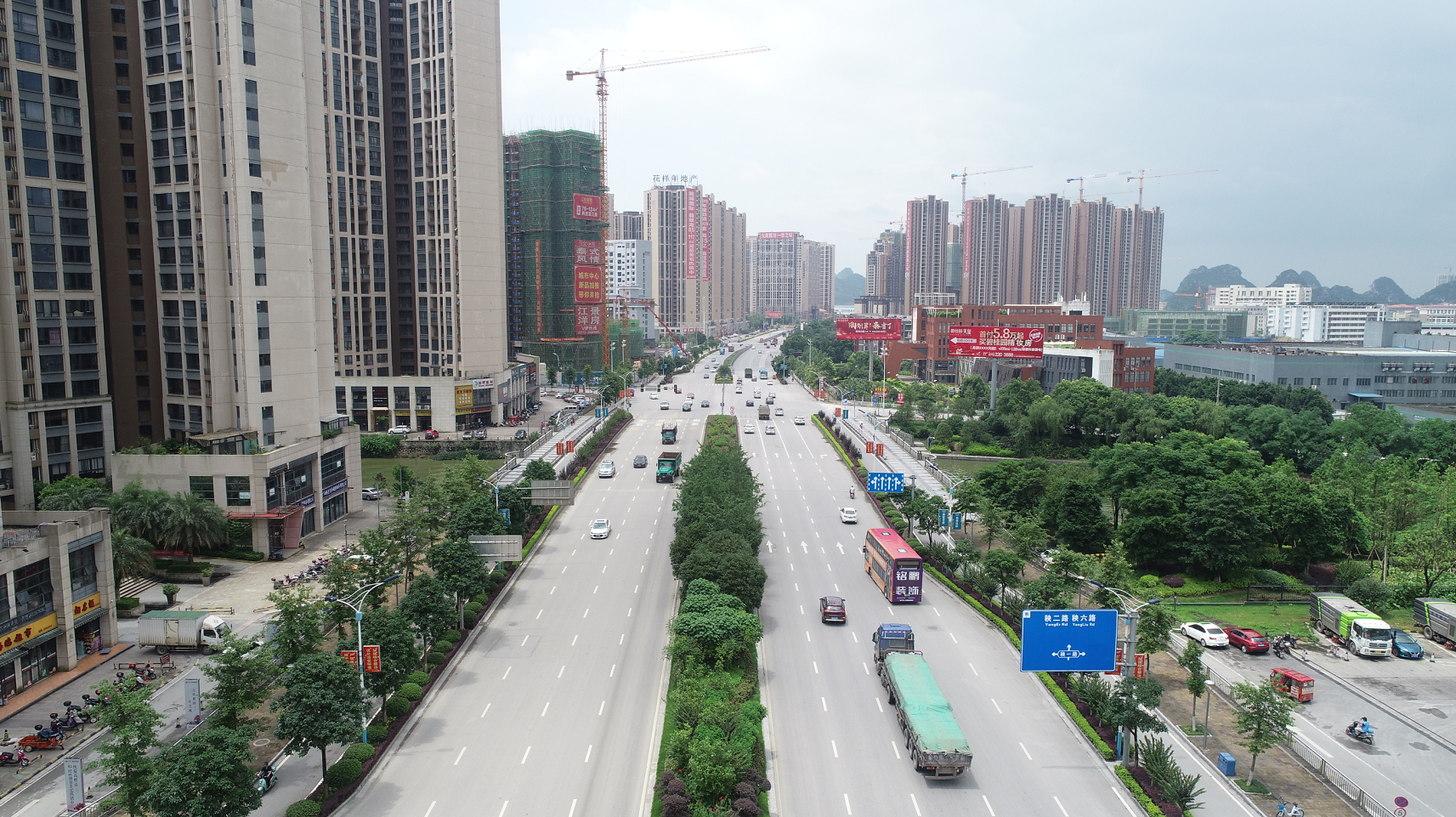 作為連接桂林新區(qū)和經(jīng)開(kāi)區(qū)的交通大動(dòng)脈,西城大道南延長(zhǎng)線(臨蘇路口至華為項(xiàng)目用地段)提升改造工程是桂林市重大項(xiàng)目,榮獲了廣西壯族自治區(qū)2021年(上半年)建設(shè)工程施工安全文明標(biāo)準(zhǔn)化工地等榮譽(yù)。項(xiàng)目起點(diǎn)為秧二十七路,終點(diǎn)與秧十三路相交,道路全長(zhǎng)2.1公里,城市主干路,紅線寬60米,雙向六車(chē)道,設(shè)計(jì)速度50公里/小時(shí)。配套建設(shè)給排水、電力、電信、燃?xì)獾裙芫€工程、路燈、綠化及交通安全等附屬工程,總投資2.59億。項(xiàng)目的順利竣工進(jìn)一步完善了臨桂新區(qū)交通路網(wǎng),改善了周邊居民生活環(huán)境,滿足了臨桂區(qū)經(jīng)濟(jì)發(fā)展需要。