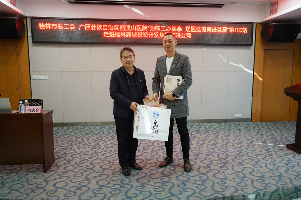 柳宏林對(duì)市總工會(huì)對(duì)活動(dòng)的全力支持與指導(dǎo),對(duì)新城投集團(tuán)提供周全的保障服務(wù)工作表示衷心的感謝,并贈(zèng)送醫(yī)院文化建設(shè)叢書、中醫(yī)養(yǎng)生禮盒。他指出,健康問題是重要的民生問題,也是工會(huì)組織關(guān)心職工的一項(xiàng)重要工作內(nèi)容,希望今后雙方加強(qiáng)溝通交流,互促共進(jìn),共同發(fā)展。