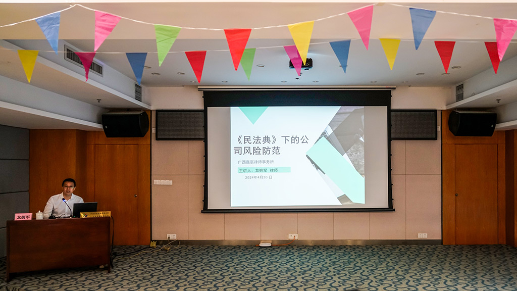 為認(rèn)真貫徹落實(shí)習(xí)近平總書記對廣西重大方略要求和對桂林的重要指示精神,鑄牢中華民族共同體意識(shí),以民族法治宣傳助力推動(dòng)“五個(gè)家園”建設(shè),把法治文化與民族文化、傳統(tǒng)文化相融合。4月30日上午,新城投集團(tuán)邀請廣西嘉宸律師事務(wù)所龍擁軍律師為全體干部員工作《公司的法律風(fēng)險(xiǎn)防范》普法講座。受集團(tuán)黨委副書記(主持工作)、副董事長、總經(jīng)理朱毅委托,集團(tuán)董事、副總經(jīng)理劉敏出席講座并講話。