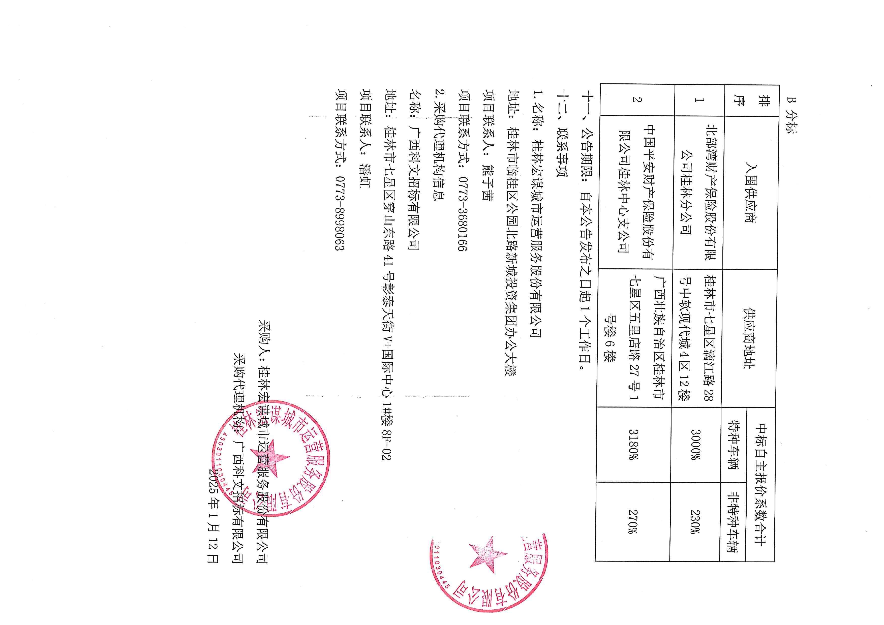 桂林宏謀城市運營服務(wù)股份有限公司2025年度保險服務(wù)框架協(xié)議采購 (KWCD5K2024062)入圍公告